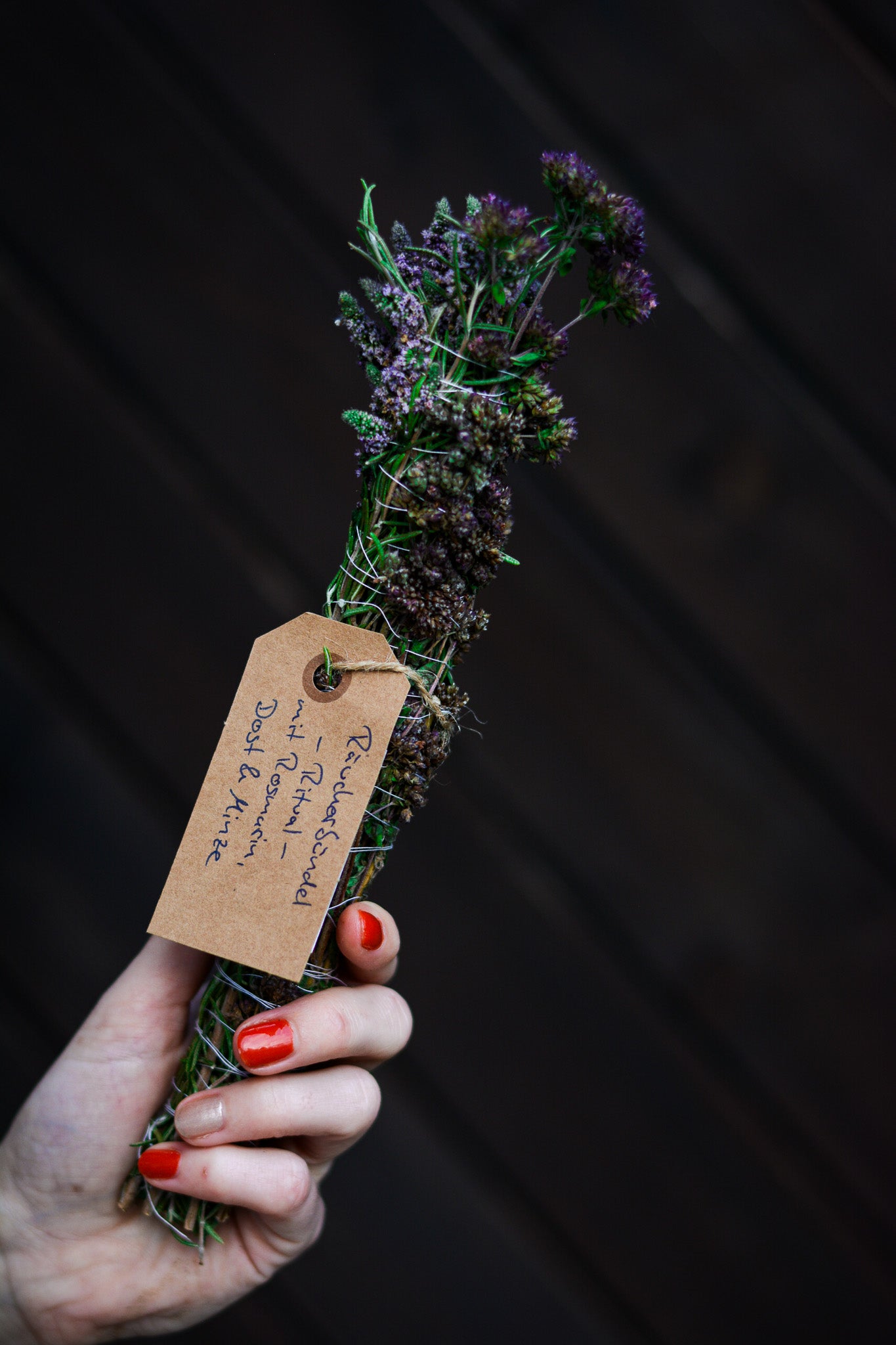 Dieses Räucherbündel wird aus Minze, Dost & Rosmarin von Hand gebunden.