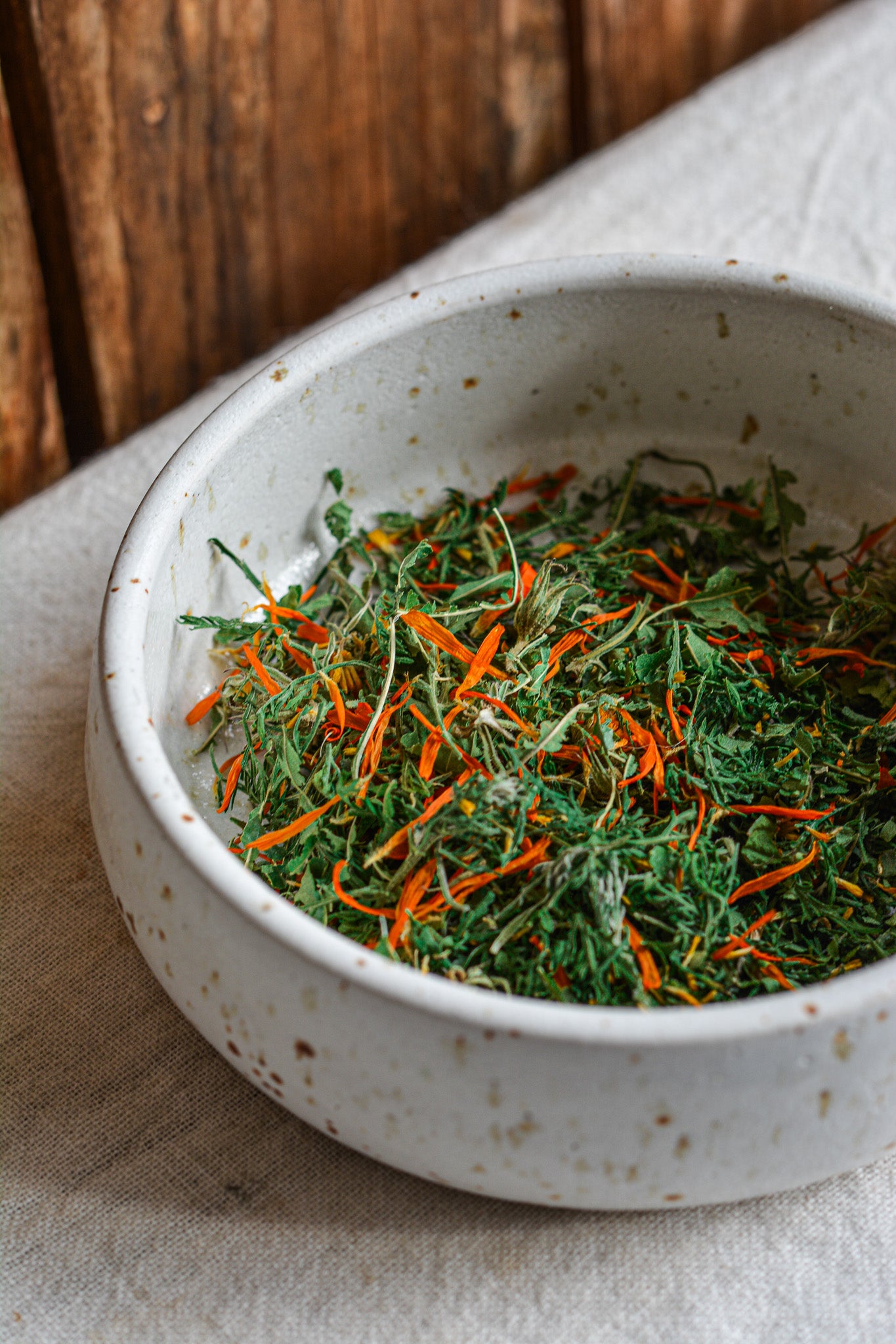 Räucherbeifuß klärt das Energiefeld, Zitronenverbene bringt Leichtigkeit & Frische, während die orangenen Blütenblätter der Calendula die Energie der Sonne verkörpern.